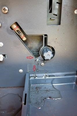 Das Wasser läuft am Ende des Kaffeebezugs von der Öffnung für den Auslaufstutzen in den Behälter unter der BG.