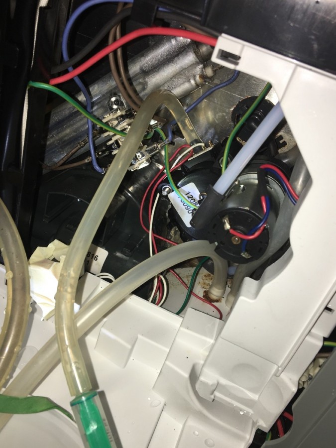 Ich habe ein Reinigungsprogramm durchlaufen lassen und den Milchaufschäumer zerlegt und gereinigt. Ebenfalls habe ich die Dichtungen der Aufnahme des Milchaufschäumers gereinigt und gefettet.