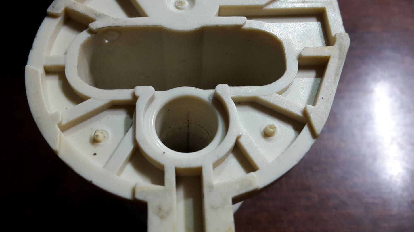 Die Dichtungen im oberen Brühkolben habe ich mit dem mitgelieferten Silikon eingeschmiert. Das Wasser läuft genau oben aus der Senke des gelben Bechers. -