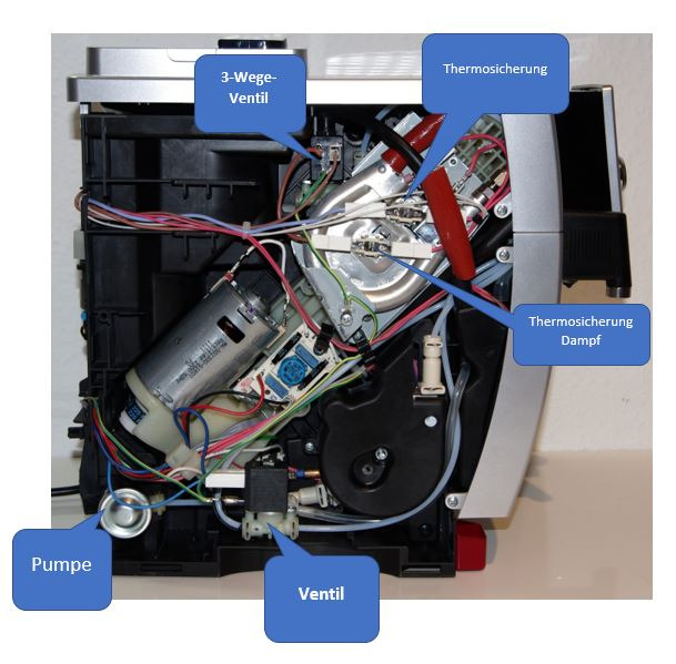Maschine einschalten und spülen: die Pumpe pumpt rhytmisch, stoßweise eine kleine Menge Wasser durch den Auslauf (Kaffebezug). Es fließt aber deutlich zu wenig Wasser und ohne richtigen Druck aufzubauen. Nach ein/zwei weiteren Spülungen läuft die Pumpe sauber durch, es wird mit größerem Druck gespült. Jetzt lässt sich auch Kaffee brühen, ohne dass der Fehler angezeigt wird. Nach einiger Standzeit beginnt das Spiel von vorne. Mehrere Spülvorgänge bis die Pumpe richtig durchläuft, dann kann man auch Kaffee brühen ohne die Fehlermeldung zu erhalten.