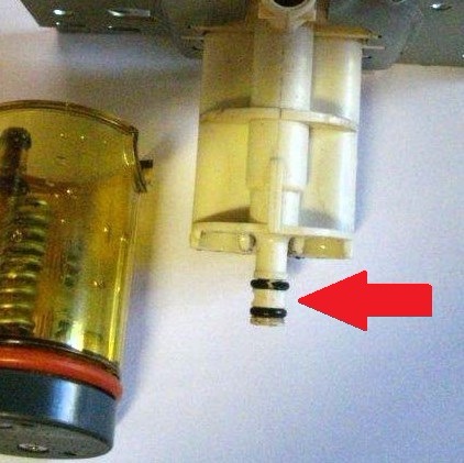 Wenn du den Brühkolben zerlegt hast, hast du kontrolliert ob an der rot markierten Stelle zu beiden Seiten Wasser austritt?