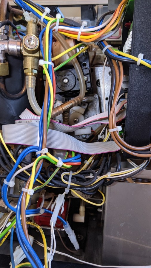 Mittlerweile bleibt die Maschine, sobald die sie länger warm ist, mit der Meldung "Gruppenfehler" stehen. Dabei bleibt der obere Kolben irgendwo stehen.