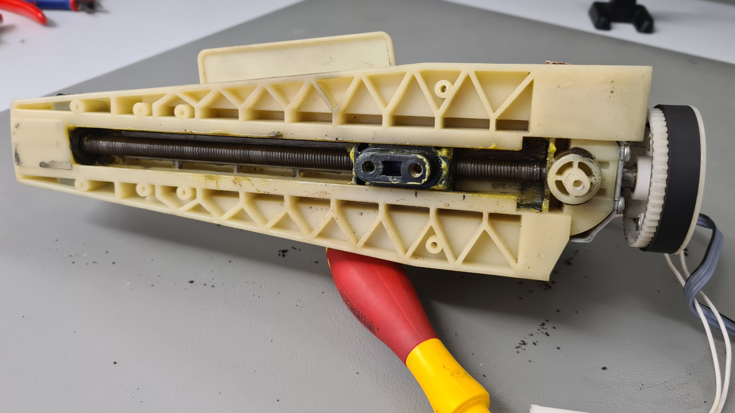 Beim Öffnen stellte ich fest, dass an der Spindelmutter der Brühgruppe, welche diese hoch und runter fährt, das Gewinde defekt war.
