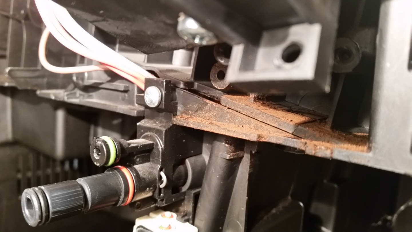 bei meiner ESAM6600 ist seit einiger Zeit auf dem vorderen Deckel des Wasserbehälters ein Klecks mit Kaffeesatz und dünnem Kaffee. Habe heute auseinander gebaut. Evtl. kommt der Kaffee aus dem schwarzen Gummischlauch der an der Innenseite hoch kommt und dann vorn [img]c:\temp\esam.jpg[/img]nach unten im Gehäuse wieder verschwindet. Ansonsten gibt es dort ja bloß die dünnen transparenten Wasserschläuche fürs Milschaufschäumen oder die Dampfdüse. Habe mal ein Foto dazu gelegt.