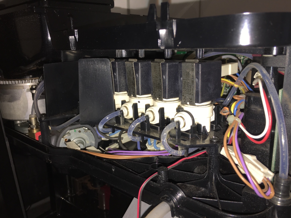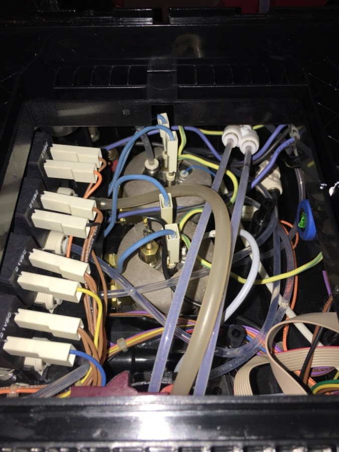 Die Maschine dampfte aus dem linken Luftauslass und war überall heiß. Im Display ist jetzt Kondenswasser. Konnte die Maschine noch ne Milchsystemreinigung machen lassen, habe sie dann ausgeschaltet und alles entnehmbare entnommen. Selbst im, sonst trockenen, Auswurfbehälter war jetzt Wasser. Auch unter der BG und auch unter der Maschine.