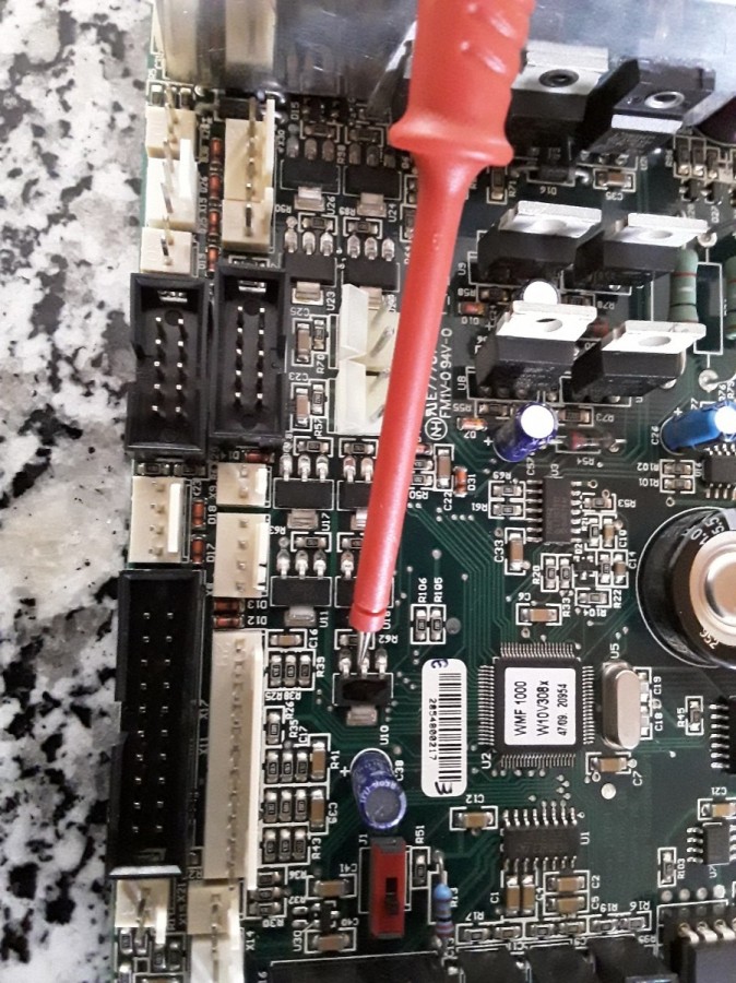 Seitdem zeigt die Maschine beim Einschalten nur noch für kurze Zeit, ein halbseitig voll ausgeleuchtetes Display an, was nach kurzer Zeit langsam verlischt. Die Pumpe pumpt sofort durch bis der Netzstecker gezogen wird. Die Brühgruppe fährt überhaupt nicht. Auf der Steuerungsplatine lassen sich, auch mit starker Lupe, keine schadhaften Stellen erkennen. Ich habe bisher den Brückengleichrichter und die beiden großen blauen Kondensatoren (4700yF; 2200yF) auf Verdacht, aber erfolglos ausgetauscht.