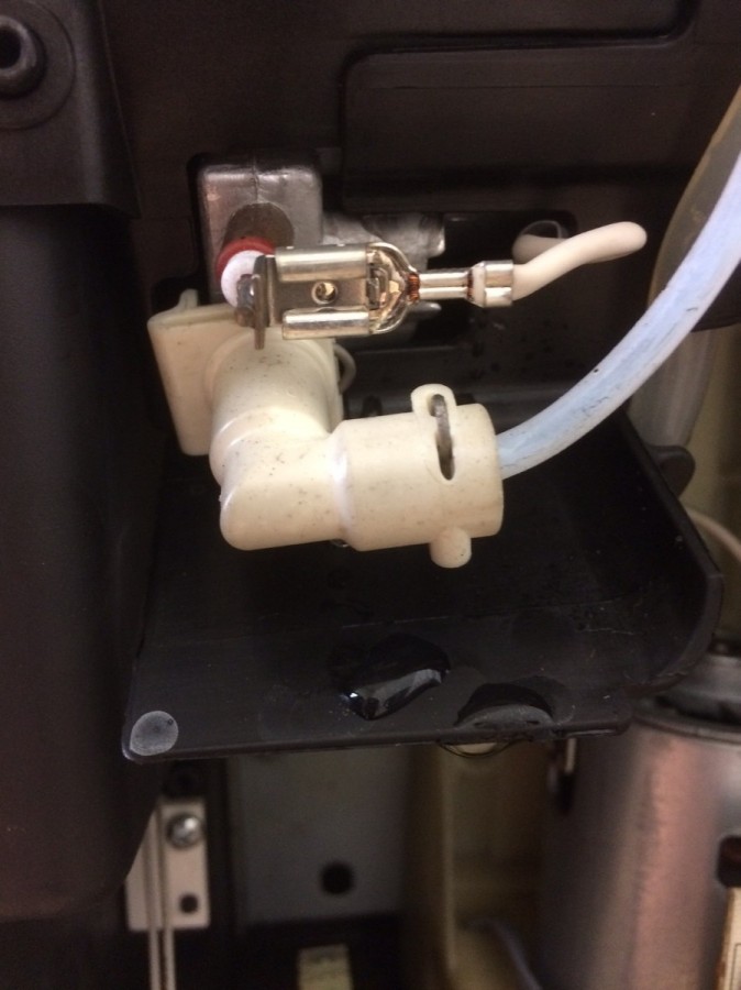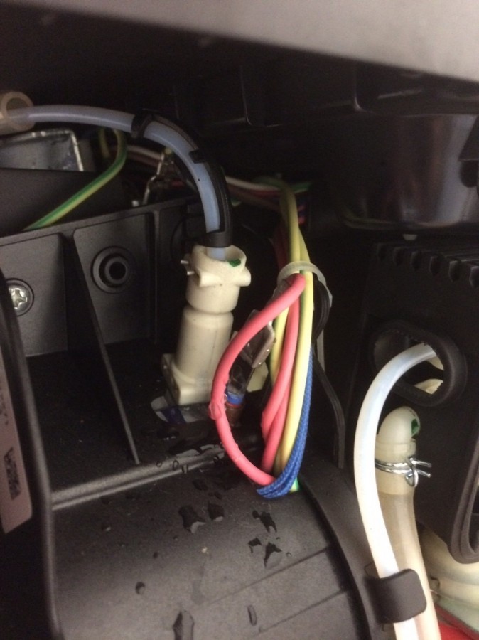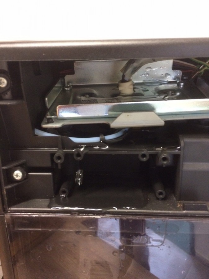 leider hatte ich während der letzten, längeren Frostperiode vor ca. drei Wochen unsere ESAM 3000 B über Nacht im Auto stehen. Das ist ihr schlecht bekommen, denn nun kommt das Wasser gar nicht erst beim Pulver an und findet sich zum Großteil im Auffangbehälter unter der Maschine wieder. Ich habe die Maschine an den Seiten aufgeschraubt, um erkennen zu können, was überhaupt passiert.
