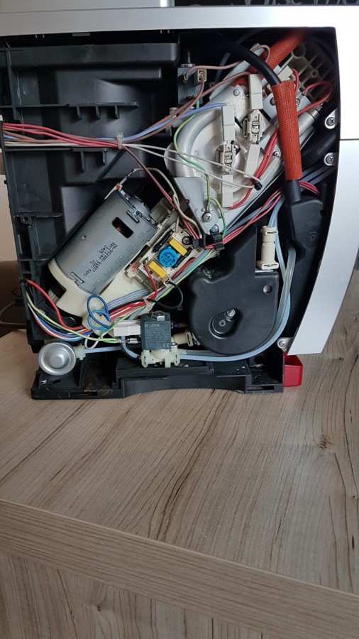 so, dass Messgerät und das Werkzeug-Set sind bei mir eingetroffen. Habe die Maschine hinten und an den Seiten so weit bereits freigelegt. Mich irritiert etwas, dass auf der rechten Maschinenseite Kalk und teilweise Kaffeereste zu sehen sind. Die Maschine hat schon seit längerer Zeit mal ne Wasserpfütze unter sich gehabt.