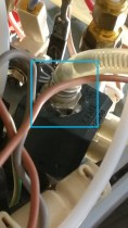 Wir konnten durch das Forum rausfinden, dass bei unserer ESAM 6600 PrimaDonna Wasser aus dem 3-Wege Solenoidventil (Magnetventil) rauskommt, wenn man Heißwasser bezieht (siehe Bilder, blaue Markierung).