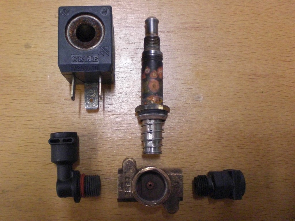 • Hast du das MV am Dampferhitzer auch wieder richtig rum eingebaut? Wenn ja, dann würde ich es nochmal ausbauen, mit 220V bestromen und mal durchblasen, ob es dann durchgängig ist. Im übrigen kann du es auch leicht zerlegen. Ich hänge mal ein paar Bilder an von einem zerlegten MV.