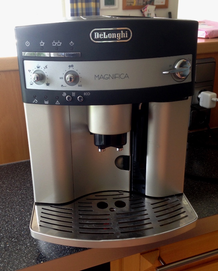 die Idee ist wahrscheinlich nicht neu und auch nicht besonders originell, aber das beigesilber der Delonghi Esam 3500 S fand ich noch nie besonders prickelnd. Als ich erstmals eine anderes Modell zur Überholung in der Hand hatte, stellte ich fest, dass ja viele Gehäuseteile austauschbar sind. Mein neuer Paradiesvogel gefällt mir auf jeden Fall besser! G
