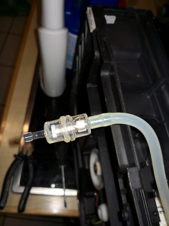 Den Zulauf vom Wassertank habe ich ebenfalls -durch Eindrücken und im normalen, also dichten Zustand- gereinigt.
