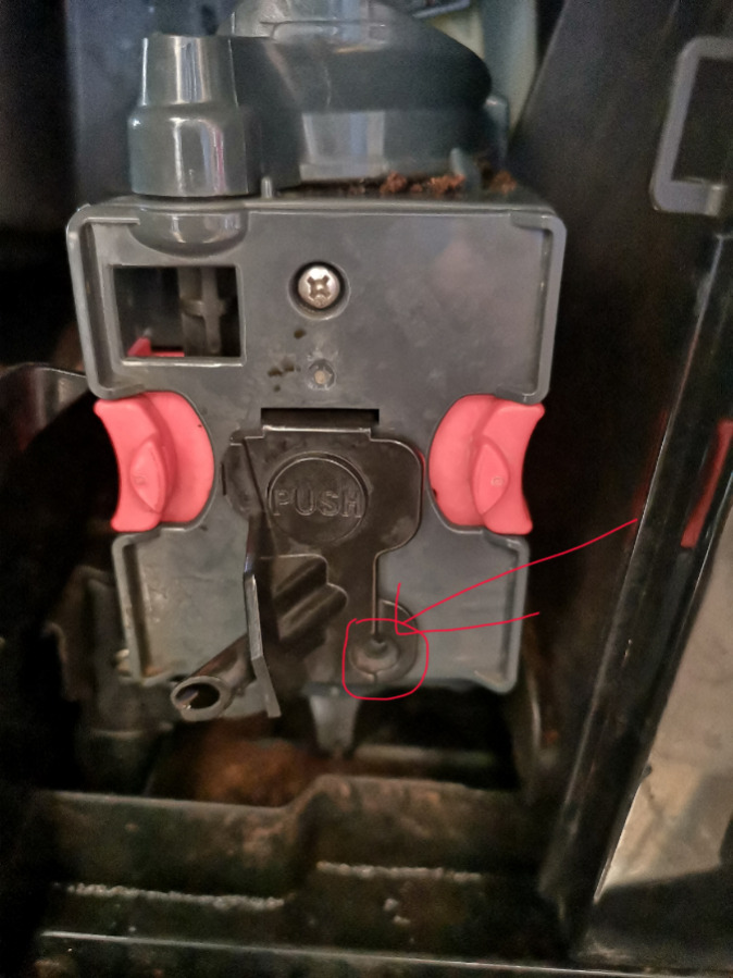 Da sproblem ist nicht der Schließmechanismus der Serviceklappe, sondern wie im Thread beschrieben, entweder der Trichter des Auslaufs auf der Innenseite der Türe, wenn dieser nicht mehr richtig federt, oder die U-förmige Aufnahme, in die man die Brühgruppe schiebt ist nicht mehr richtig fest (die 2 Schrauben mit Innensechskant)