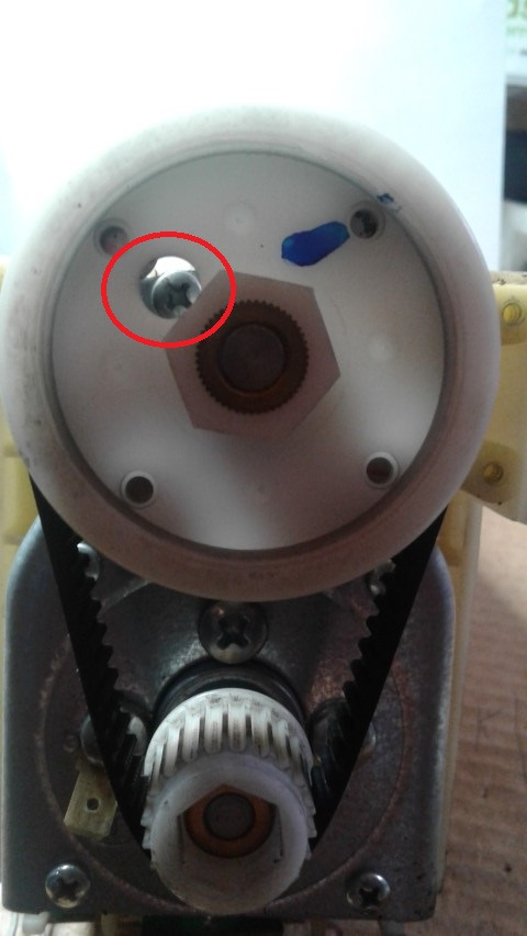 Vorher natürlich die Fixierungsschraube lösen (siehe Loch im Antriebsritzel).