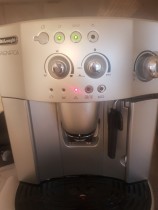 Die Maschine ist neu (vor nicht mal 1 Woche gekauft) und war bis gestern ok. Seit gestern leuchten nach dem Einschalten nur die Knöpfe mit den Tassen + das Dreieck.
