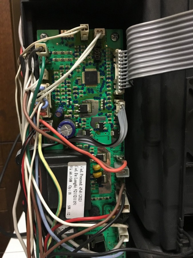 Leider hat sich nach dem elektr. Anschluß des Motors nichts verändert im Verhalten der Maschine, auch der Testlauf lässt sich nur aufrufen, jedoch nicht die einzelnen Funktionen aufrufen. Maschine startet mit einem Klackgeräusch und beim Ausschalten ebenfalls, hört sich an wie aus der Leistungsplatine.