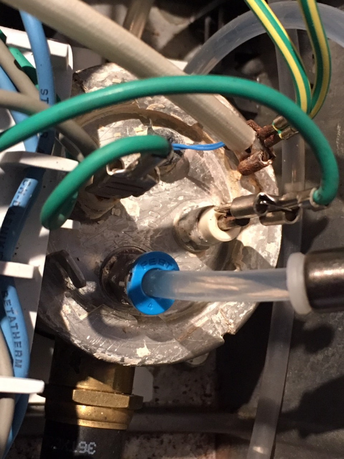 Hier sammelte sich so viel Kalk an, das vermutlich ein Fehlerstrom den FI ausgelößt hat.