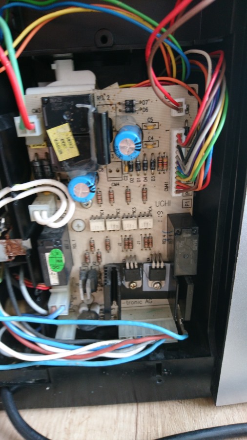 Momentan glaube ich, dass es von der Steuerplatine oder Bauteilen, welche sich dahinter befinden kommt. Zumindest lokalisiert das mein Ohr. Habe mal ein Foto von diesem Bereich gemacht. Hört sich fast an wie ein "brummender Trafo".