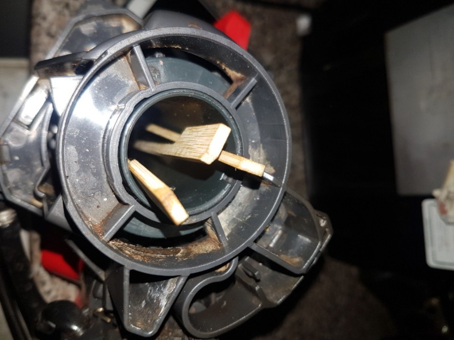 Ich habe drei Holz Spieße aus der Küche geholt und vorsichtig damit die Nasen gelockert.Spieße müssen stecken bleiben.