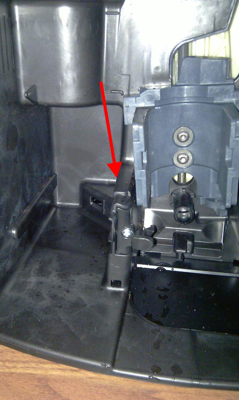 Die BG reinige ich freilich öfters, die kann man ja leicht entnehmen. Links neben der BG-Aufnahme ist eine kleine Wand, neben dem Tresterbehälter. Und da wäre ich gerne besser hingekommen um die letzten Brösel zu entfernen.
