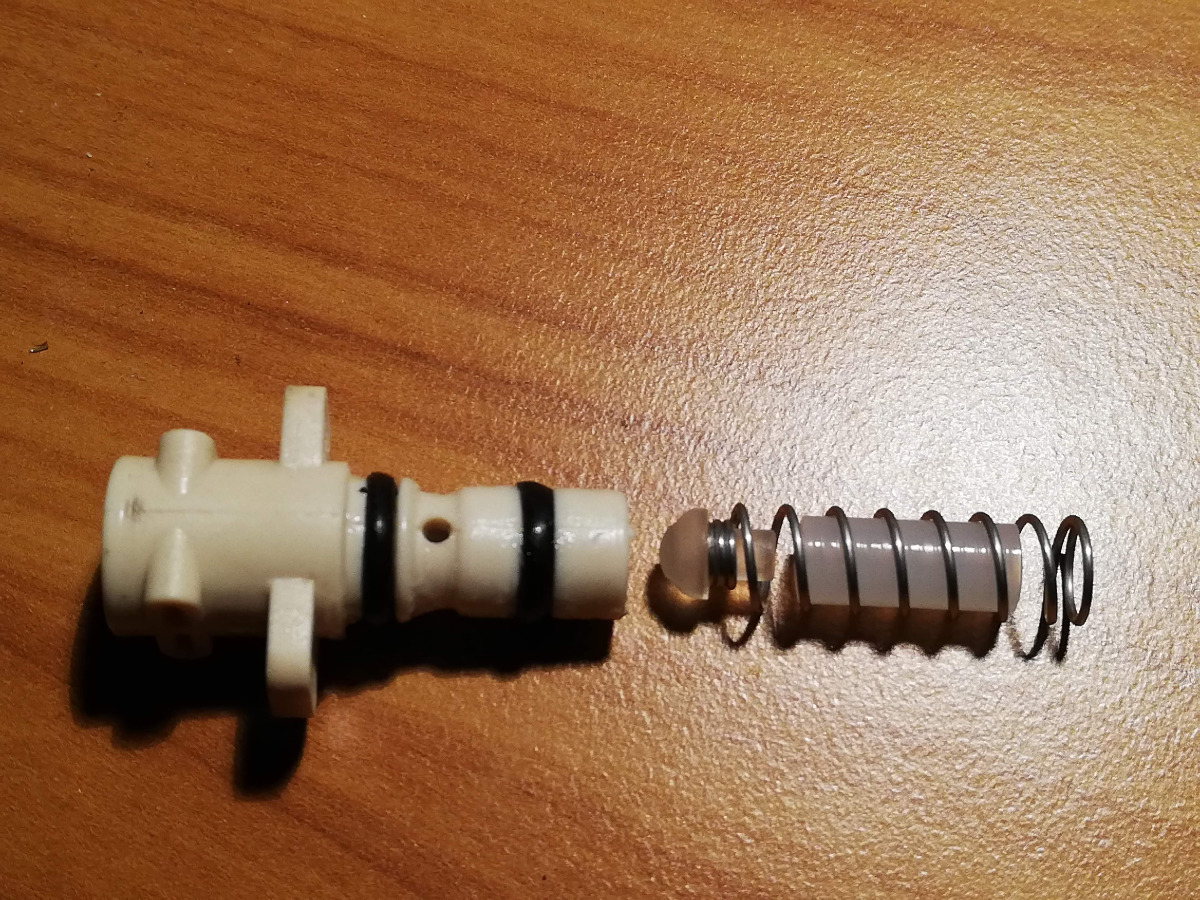 1. Mehrfach den oberen Brühkolben entkalkt - auch über zwei Tage... aber keine Änderung.