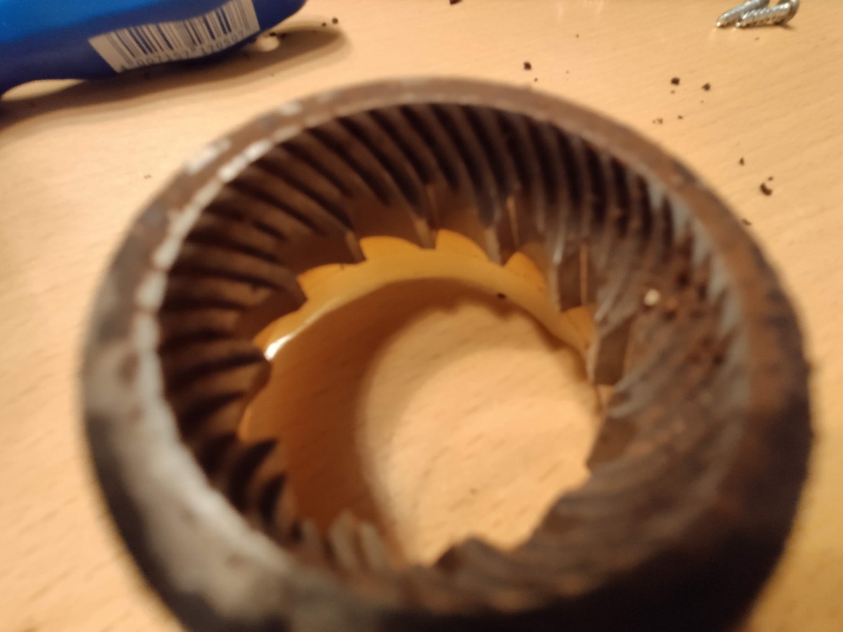 Da die Maschine ja schon etwas älter ist habe ich mir gedacht das vielleicht die Mahlsteine bzw. Kegel verschlissen sein könnten. Unten habe ich ein paar Bilder angehängt. Ich hoffe das man etwas erkennen kann.