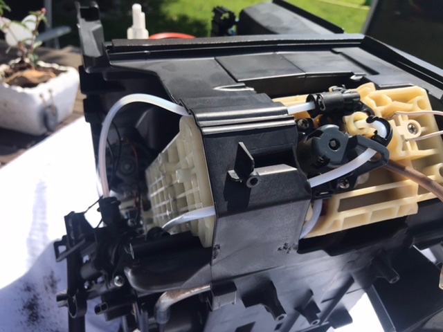 Du hast die Überläufe durchgepustet. Bleibt der Weg Pumpe Heizung, Heizung Brühkolben und BK zur Brühgruppe. Die dünnen Schläuche sind jeweils mit einer Klammer befestigt, abnehmen und pusten.