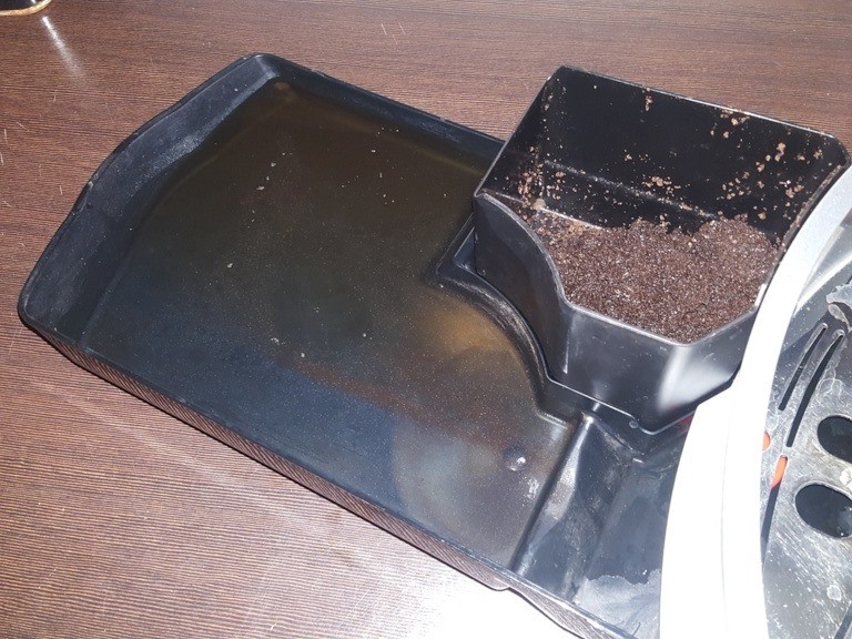 Es würde Wasser nach 4 Kaffee-Bezügen aus dem Boden der Maschine austreten. So. Nun habe ich das ausprobiert und konnte es nach 5 Kaffee-Bezügen nicht bestätigen. Was mir aber aufgefallen ist, ist folgendes: