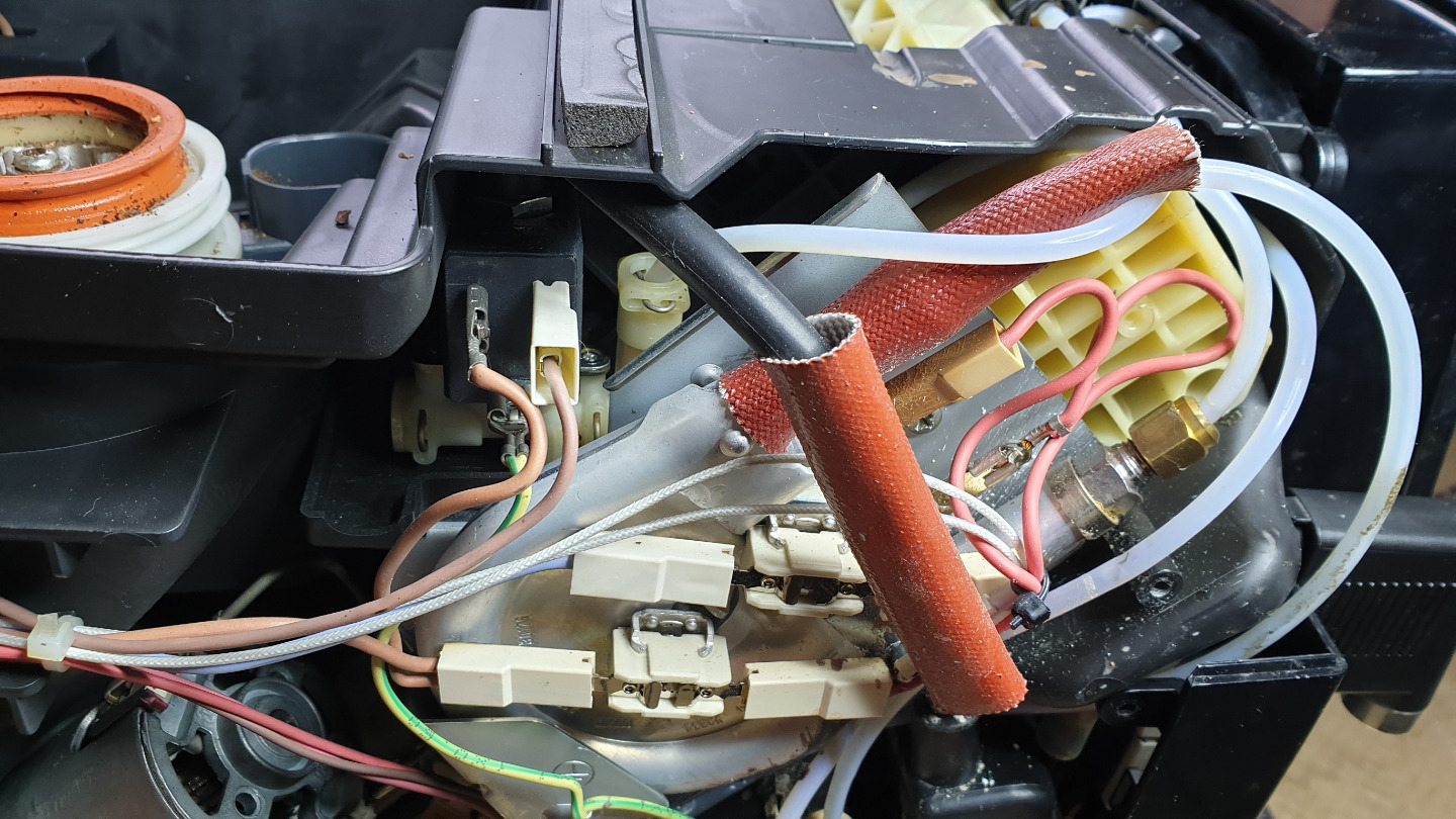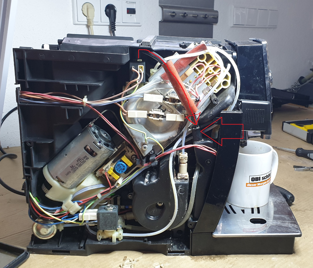 Habe sie aufgeschraubt, und gesehen das vom Thermoblock Wasser in den Kondenswasser ablauf fließt, zur gleichen Zeit wenn eigentlich der Kaffee gemacht werden sollte.