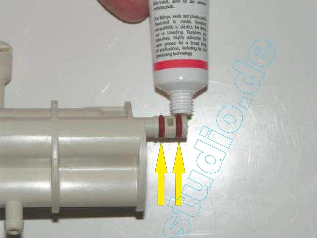 • Ja, das Teil. Bevor du überall mit Druckluft dran gehst, kannst du auch einfach Mal durchpusten oder mit einer kleinen Spritze versuchen Wasser durch zu Spülen. Und nicht nur die Schläuche müssen durchgängig sein, auch der Thermoblock selbst. Und mit Druckluft bekommt man Kalk auch nicht so gut von den Wandungen.