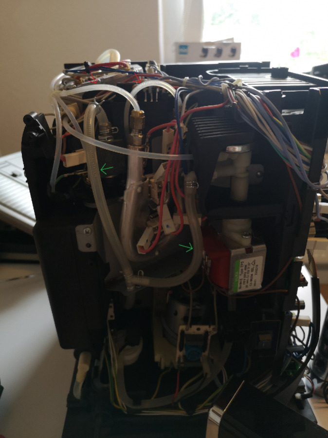 • Hi, trotzdem vielen Dank erstmal für deine Hilfe, alles gut, man kann sich ja jetzt auch nicht mit jeder Maschine auskennen. Ich habe jetzt alle MV getauscht, jetzt läuft sie wieder. Das ursprüngliche Problem lag an dem hinteren MV, die zwei kleinen Schläuche, wo bei mir nur bisschen Kondenswasser drin war, sind für den Dampf verantwortlich, dort ging es dann nicht mehr weiter. Was komisch ist, das MV vorne, bei dem Bild oben das linke, das hat auch im Testmodus nicht geklickt, obwohl es ganz war. Als ich das hintere MV getauscht hatte, hat dann das Vordere im Testmodus auch wieder geklickt. Keinen Plan woran das lag, aber jetzt sind alle neu.