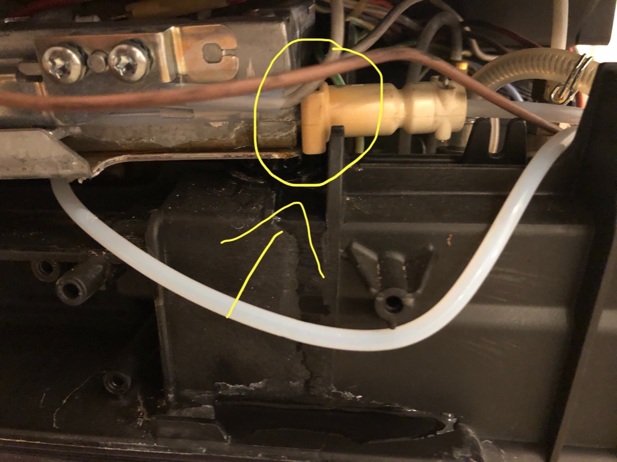 Stellen Sie zunächst sicher, dass Ihre Pumpe Wasser pumpt, indem Sie den Kunststoffeinlassschlauch der 5-mm-Heizung entfernen und die Pumpe starten (Testmodus, Spülen, spielt keine Rolle).Wenn ja, dann gehe ich meiner Meinung nach direkt zum "No-Leak-Ventil" (das mit der Feder und dem Plastikstift). Entfernen Sie es und überprüfen Sie, was passiert.