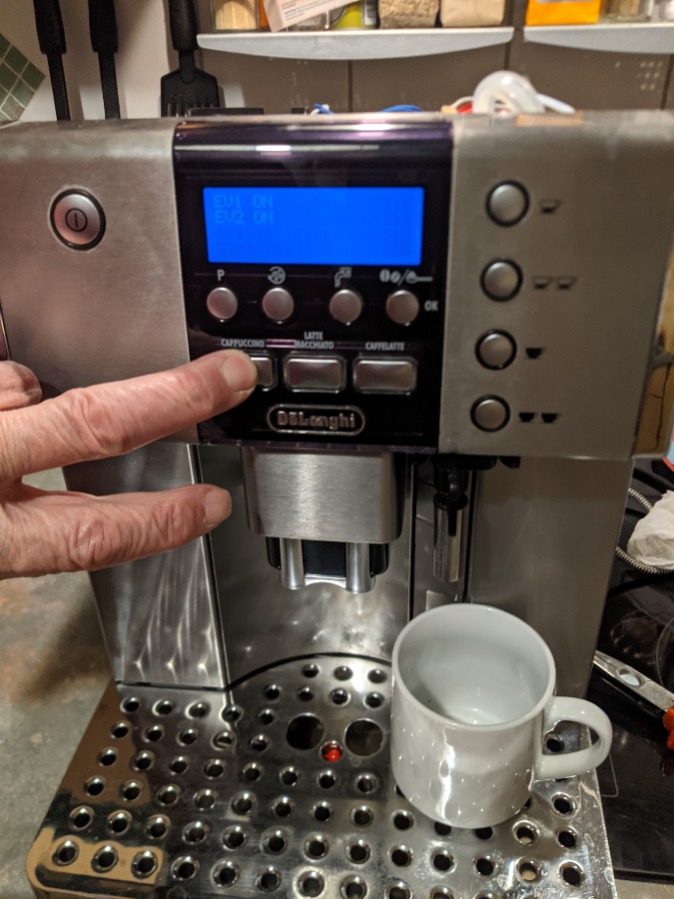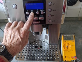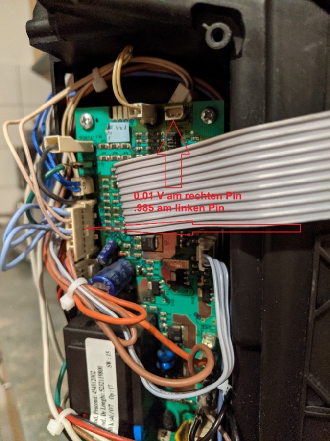 -> Ziehe bitte dazu den Stecker für die Dampfheizung direkt an der Platine ab. Der Stecker ist seitlich an der Platine (IFD). Da wo Du diesen Stecker abgezogen hast, kommt eine Meßspitze dran. Die andere Meßspitze klemmt Du an einen der vier zusammenhängenden Steckern unten links auf der Platine - Diese Stecker sind nicht isoliert und deswegen darsf Du Dir einen aussuchen (KEINE Kurzschlussgefahr).