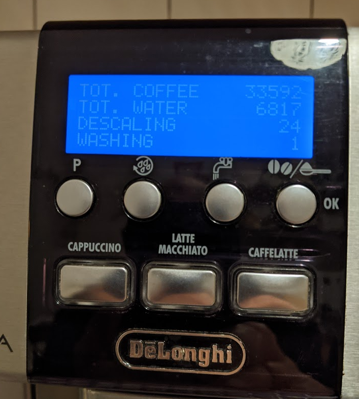 Da werden Dir die Anzahl der gezogenen Kaffee´s angezeigt. Ausserdem werden Dir die verbrauchte Litermenge von Wasser, Anzahl der