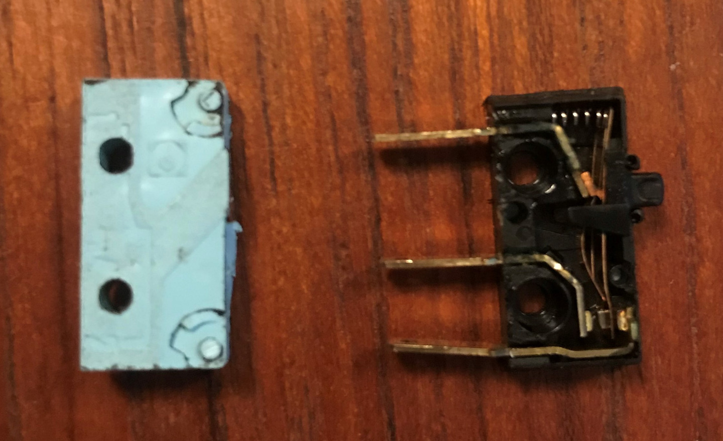 Im Mikroschalter waren die Kontakte korrodiert. Es ist zwar frickelig, den Kupferkontakt wieder richtig einzubauen, aber es geht. Anbei die Fotos.