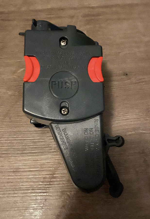 Auf den ersten Blick sieht bei der Brüheinheit und diesem Hebel, der den Trester in den Behälter schiebt, nichts aus, als sei etwas verklemmt, gebrochen, lose o.ä.