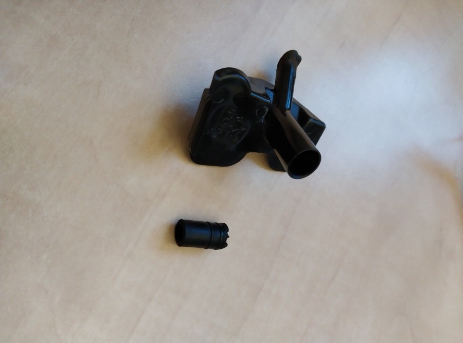 Mein Sohn hat dann vom Motorrad einen Schlauch auf den Zapfen/Stutzen gesetzt,