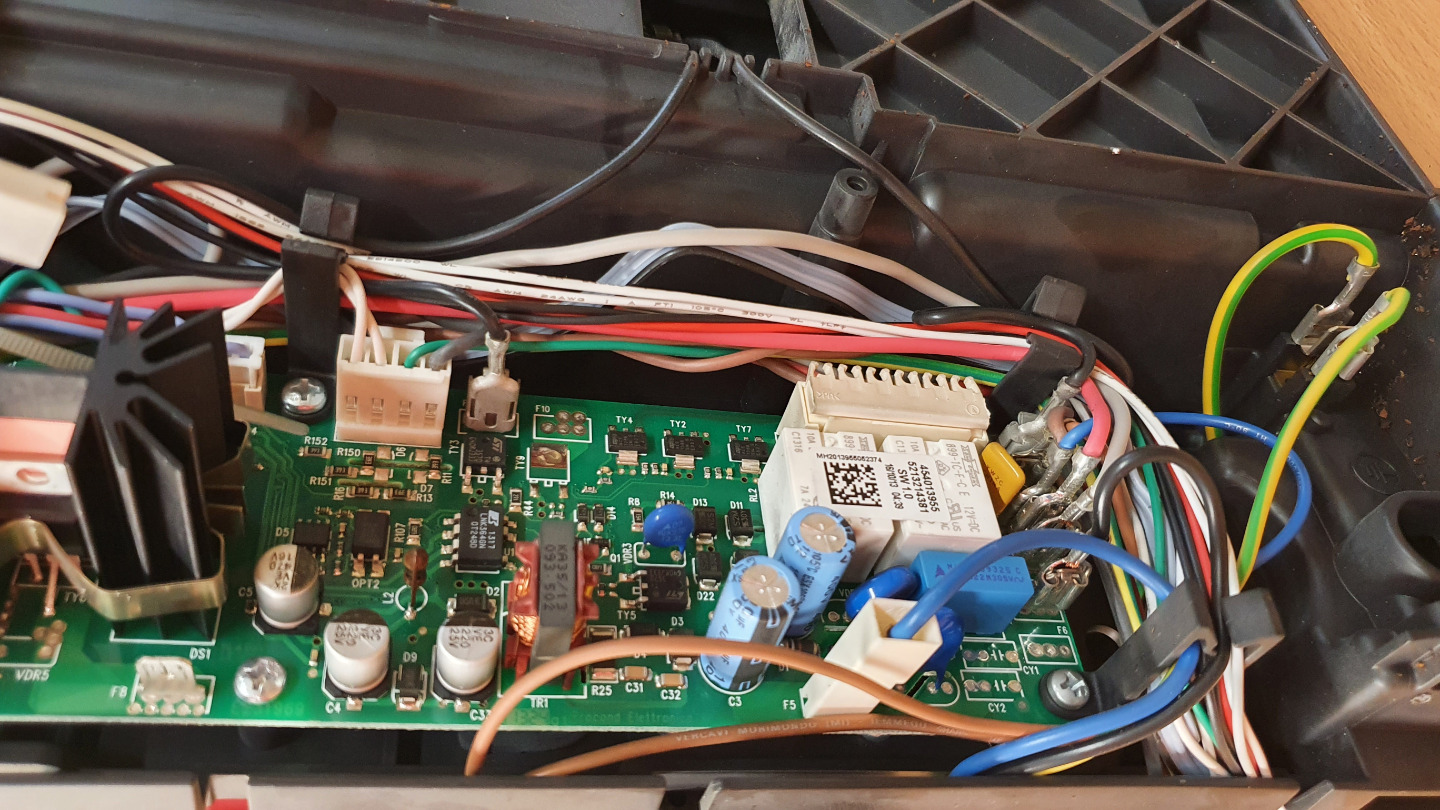 • Hier Fotos der Platine und von dem Magnetventil hinter der Frontklappe. Das Ventil hat einen Widerstand von etwas über 2kOhm