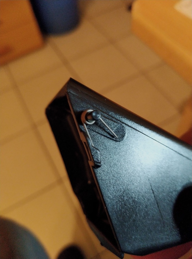 Das gebogene gehört dann nach hinten, hinter die Plastiknase - und das gerade Beinchen nach vorne hinter das viereckige Teil mit dem Loch?