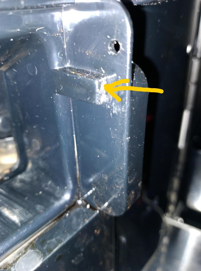 Und an dieser Stell drückt die Feder gegen die Tür (gelber Pfeil).