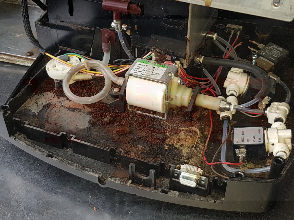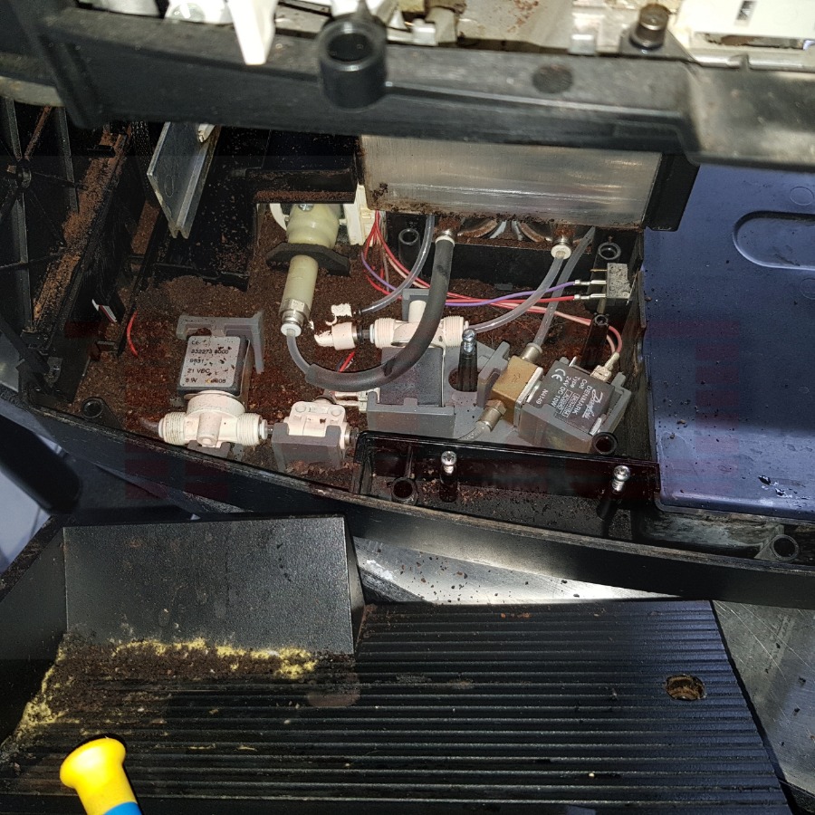 Die Zerlegung gestaltete sich schwierig, a. weil es meine erste WMF1000 war und b. weil alle Gehäuseteile mit Kaffee "zugekittet" waren, der Hammer, die Maschine schlägt echt dem Fass den Boden aus.