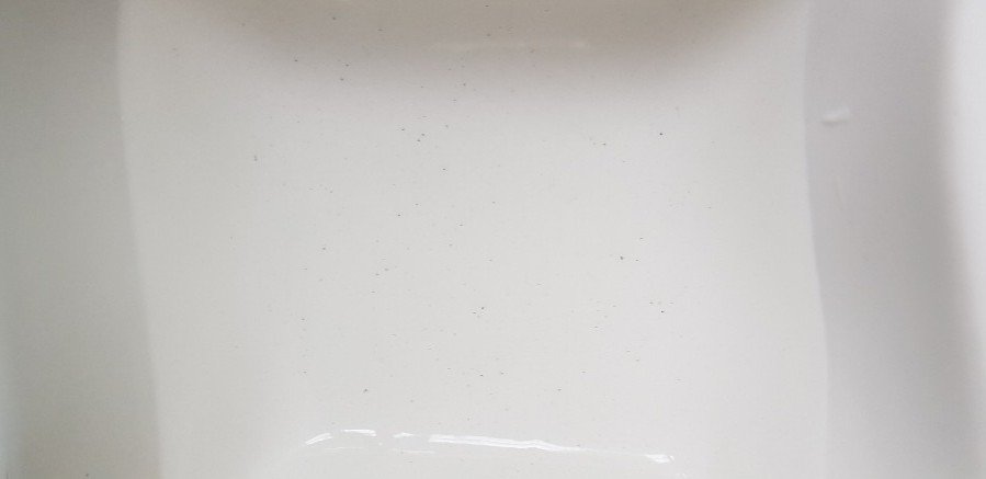 Nun dachte ich mir, dass die Pumpe hier jetzt vielleicht gefährlich trockengelaufen ist und habe das Spülwasser, welches beim Ausschalten der Maschine durch die beiden Düsen kommt, mal genauer angeschaut.
