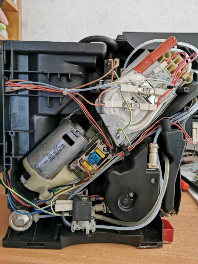 Ich hab hier den Vollautomaten meiner Mutter. Er wurde von meinem Bruder kurz versucht wieder zu reparieren und dann stillgelegt.