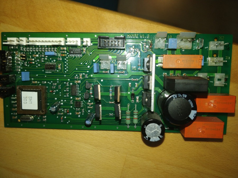 Falls die Maschine aber startklar ist, geht sie sofort wieder in den Standby und aus der groben Richtung "Thyristor + 2 Transistoren" und Kondensatoren (näher konnte ich es nicht eingrenzen) scheint wieder Rauch zu kommen. Die Motor-Transistoren werden dabei handwarm.