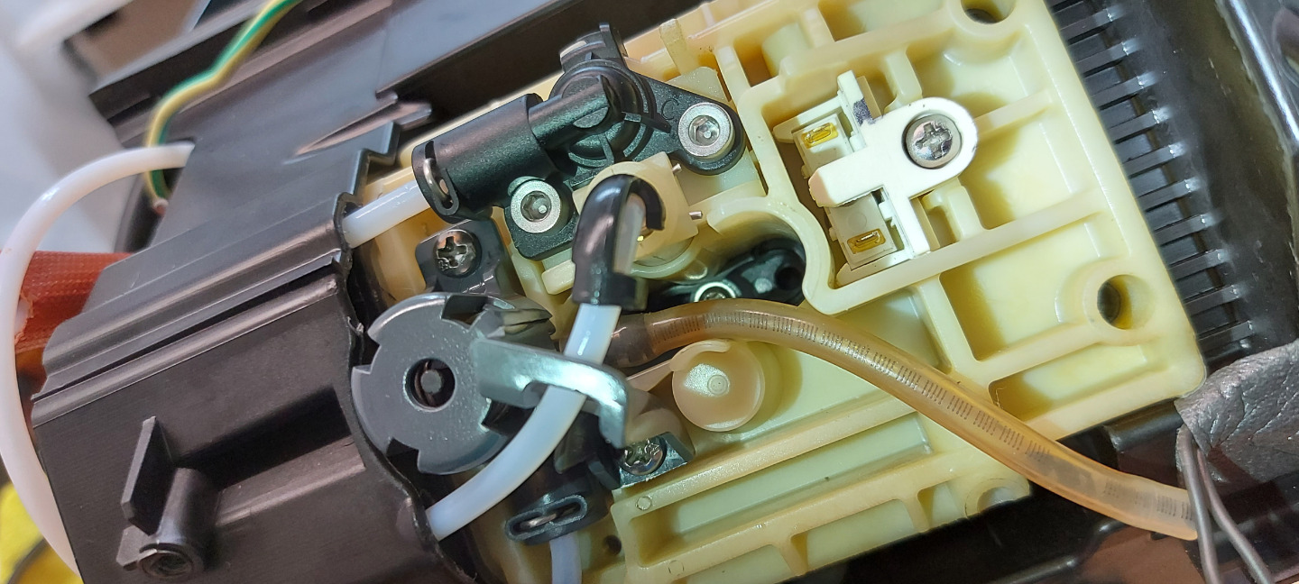 • @Pusche Den Schlitten der Brühgruppe habe ich auch ausgebaut, der Schlauch war nicht geknickt und ist nicht verstopft (Siehe Bild)