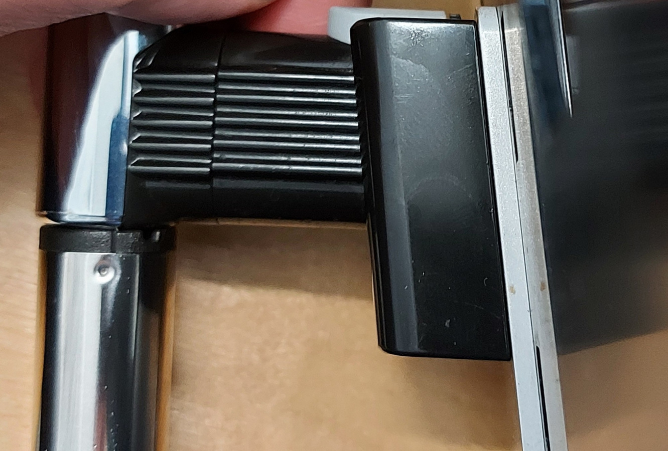 Was ich erkennen kann, sind zwei Metallstäbe, auf dem ein Kunststoffteil läuft. Da die Stangen verchromt sind, also Oberfläche recht glatt, vermute ich das Kunststoff Teil, an dem ein kleiner Schlauch hängt. Das wird wohl über die Zeit eingelaufen sein. Ob es das einzeln als Ersatzteil gibt, wage ich zu bezweifeln. Ich habe es jedenfalls noch nicht gefunden.