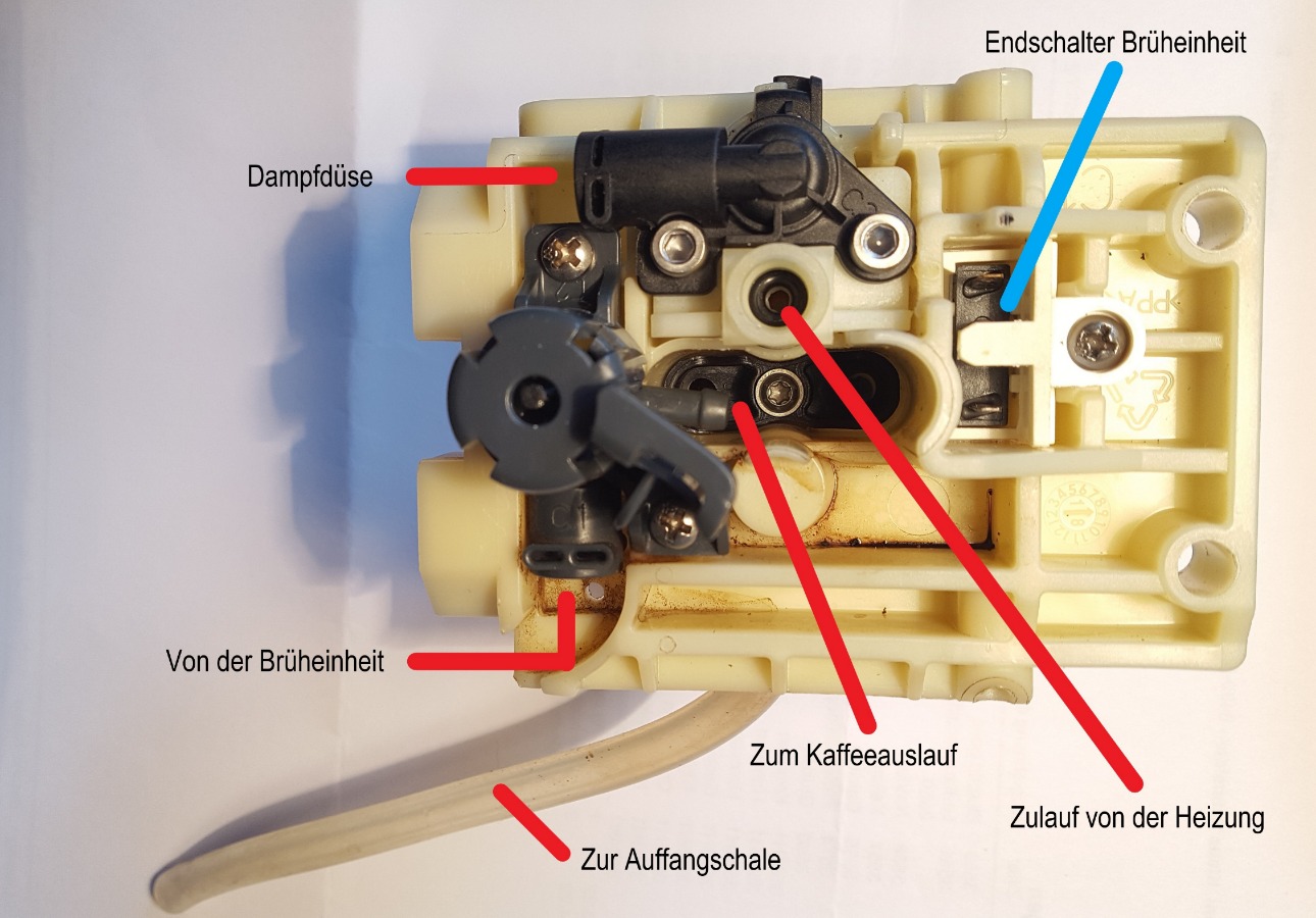 3-Wegeventil ist hauptsächlich bei Maschinen mit Milchbehälter und Milchschaumzubereitung vorhanden.