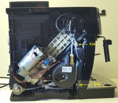 Die Kalkspuren an den markierten Stellen sind normal, die entstehen durch austretenden Wasserdampf nach der Kaffeezubereitung.