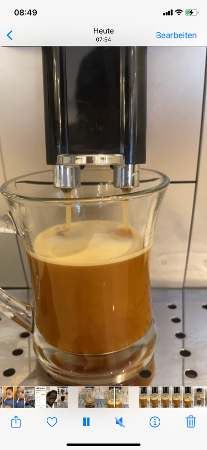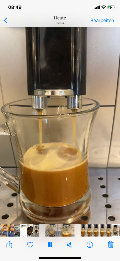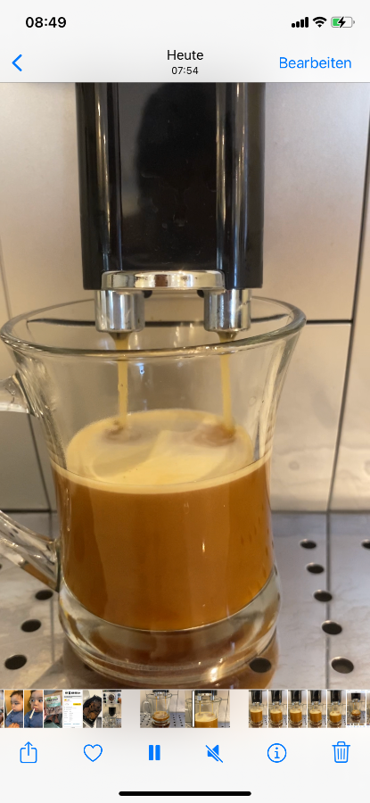 die DeLonghi ECAM 22.110 habe ich mir vor ca. 3 Wochen angeschafft. Die erste Woche denke ich war in Ordnung, doch dann ist mir aufgefallen, dass der Kaffee dünner schmeckt. Also habe ich beobachtet. Mir ist aufgefallen, dass beim Kaffeeziehen der Kaffee als Crema rauskommt doch in den letzten Sekunden ist es wirklich nur hellbraunes Wasser. Der Kundenservice ist keine Hilfe. Pocht drauf, dass ich die Maschine auf unbestimmte Zeit einschicken soll. Doch das ist für mich aktuell keine Option da ich meinen Kaffee morgens brauche. Ich konnte leider kein Video hochladen, daher habe ich Fotos vom Prozess gemacht. Meiner Meinung ist zum Ende hin, der Kaffee nur noch Wasser. Mich interessiert was ihr dazu sagt.