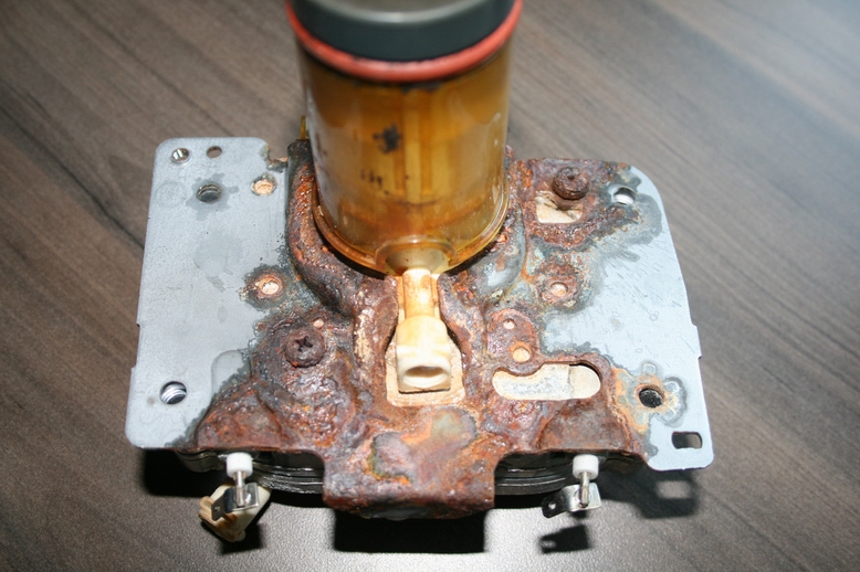Das Blech, welches oben auf dem Thermoblock den Thermosensor und die Sicherungen hält, sieht zusammen mit der Halteschraube aus wie ein Wikingerwrack aus der Ostsee :mpf: